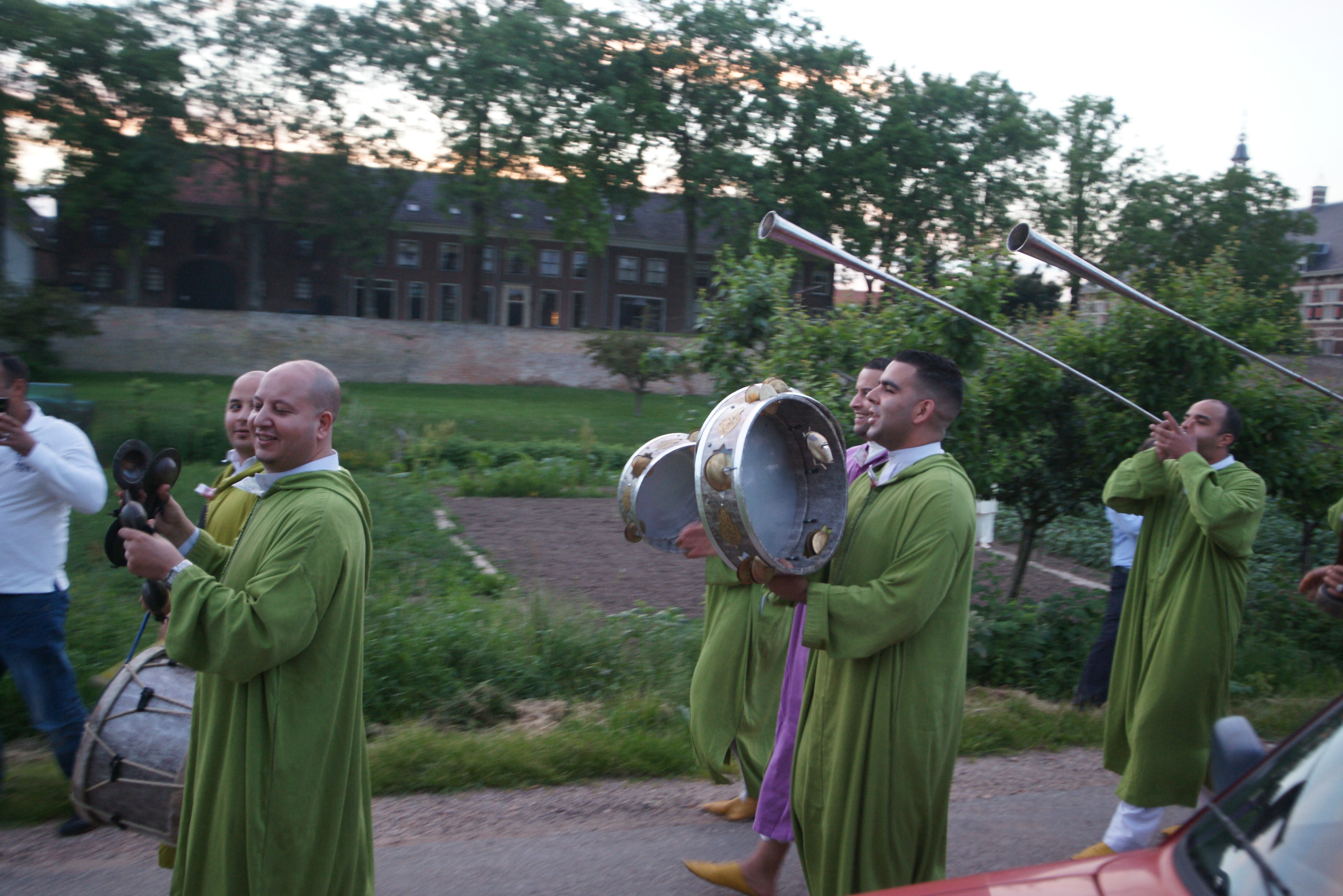 De middeleeuwse setting bood een prachtig podium aan het folklore feest. Op de deel werden talloze gerechten geserveerd en de buitenoven werd ontstoken voor een grote Marokkaanse barbecue. David Blom gaf een lachsessie aan alle aanwezigen, waardoor het sprankelende groepsgevoel verder omhoog werd gebracht. De avond bereikte zijn hoogtepunt toen de Dakka Nzaha langs de stadsmuur van Buren de terp van Kunsthof de Heuf op kwam, met prachtige ritmische oerklanken en gezang. De gasten raakten in een toestand van extase. Samen trokken zij de stad door om de verbroedering te vieren. Het is waar groepsaccommodatie Kunsthof de Heuf voor staat: het groepsgevoel, kunst en verbroedering. De hoeve is eruit ontstaan.