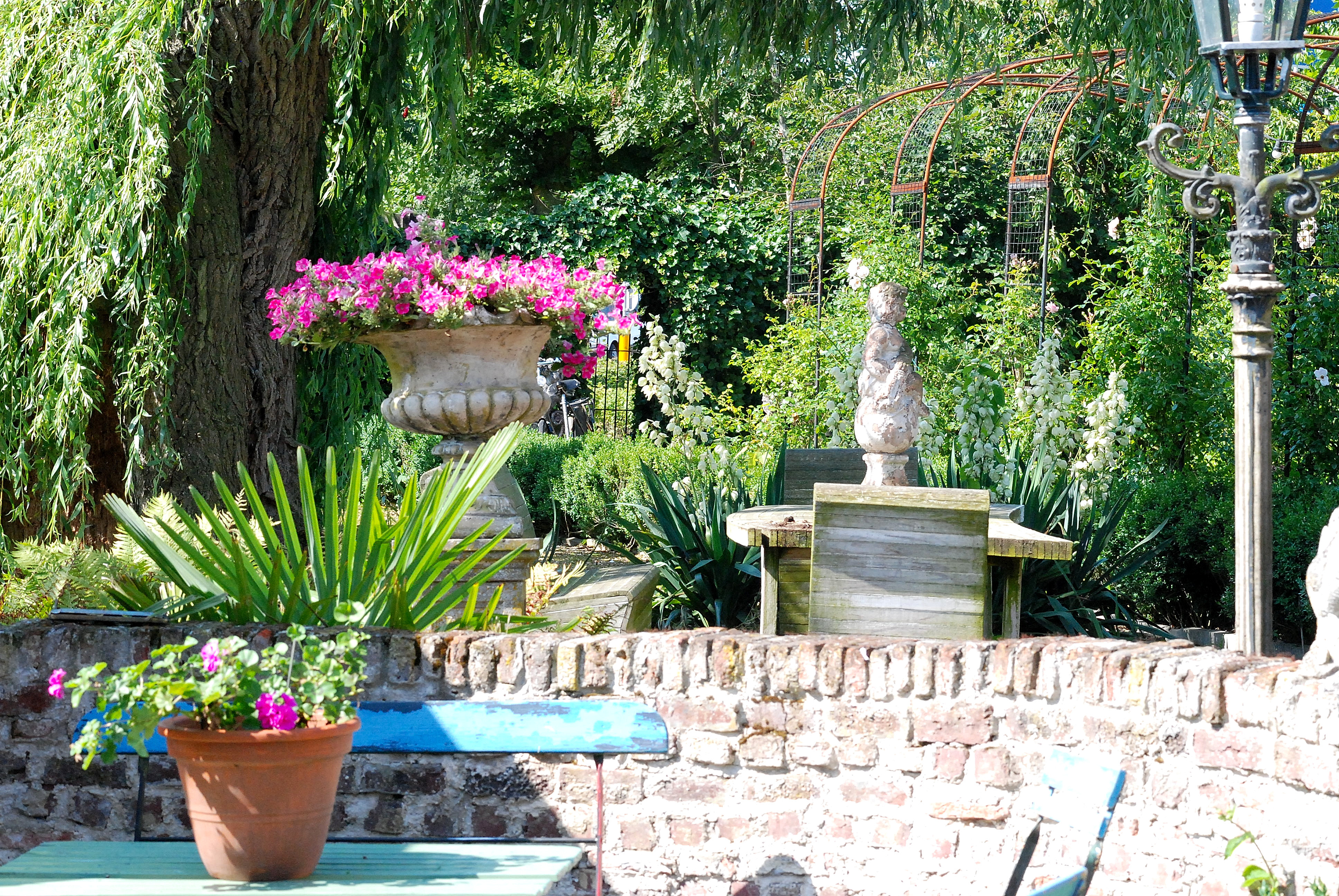 U bent op zoek naar een bijzondere plek. Geen van der Valk hotel, Center Parcs of doorsnee overnachtingsmogelijkheid. Nee een plek die groot is in haar gezelligheid, in haar warme sfeer, haar ligging. Had ik al verteld dat Kunsthof de Heuf in het historische plaatjes Buren ligt, maar toch echt ‘buiten’ gesitueerd is? Ze heeft prachtige tuinen waar het werkelijk aan niks ontbreekt. Alles even bijzonder. Palmen, rozenlanen, bananenbomen, oude fruitbomen, hofjes, beelden, authentieke vuurplaats. Het is eigenlijk te veel om op te noemen. Maar alles is zeer in harmonie met elkaar. En in de avond wordt dit alles omgetoverd tot een waar paradijs. 250 bollampjes versieren de tuin, wij durven te stellen dat u zoiets nog nooit gezien heeft. In ieder geval niet in een tuin op deze wijze. Het licht schittert in het water, het verlicht de tuinen van de Kunsthof.